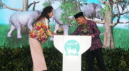 Di akhir pertemuan Kapolda Jambi memberikan bingkisan kepada Umar Yusuf sebagai simbol penghargaan dan silaturahmi. | dia