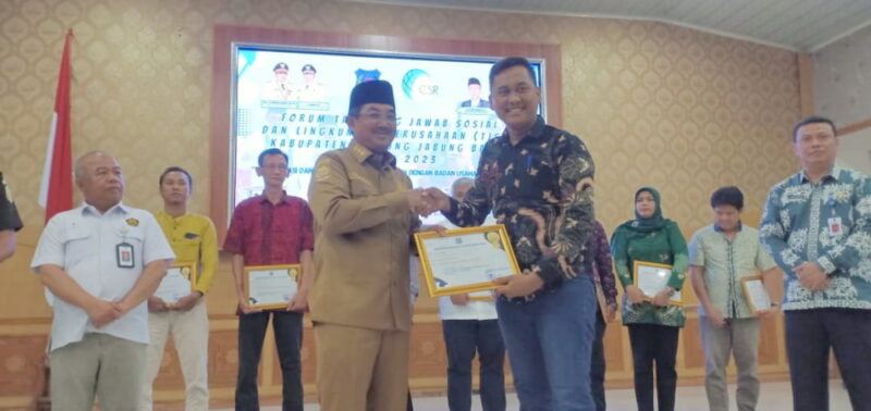 Penyerahan penghargaan dilakukan bersamaan dengan acara Forum TJSL Perusahaan, di Balai Pertemuan Kantor Bupati Tanjabbar, Jambi, Selasa, 19 Desember 2023.