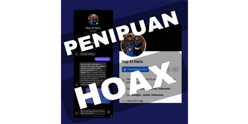 Ariansyah menginformasikan kepada masyarakat bahwa akun Facebook Haji Al Haris adalah akun palsu. Jika ada yang menerima permintaan donasi untuk masjid dan pesantren itu tidak benar alias hoax. ***
