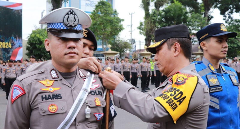 Kapolda Jambi, Irjen Pol Rusdi Hartono, menyematkan tanda petugas Operasi Lilis 2023, di Lapangan Mapolda Jambi, Kamis, 21 Desember 2023 | foto : dia