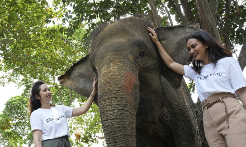 Meliza M Rusli, Direktur Utama Permata Bank dan Atiqah Hasiholan, Public Figure & Brand Ambassador PermataBank bersama Gajah Sumatra | pb