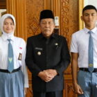 Wakil Gubernur Jambi, Abdullah Sani, bersama dua anggota Paskibraka Tingkat Nasional 2024 utusan Jambi, Kamis 11…
