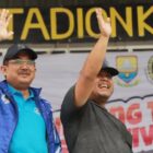 Bupati Tanjungjabung Barat, Anwar Sadat (kiri) pada pembukaan Gubernur Jambi Cup 2024, di Muara Bulian, Batanghari,…