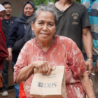 Seorang warga Jakarta menerima donasi makanan dari karyawan Bank DBS Indonesia | dbs Tingkat Kelaparan Indonesia…