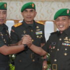 Danrem 042/Gapu, Brigjen TNI Rachmad, bersama Dandim 0415/Jambi yang lama dan baru, usai serah terima jabatan,…