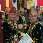 Edi Purwanto bersama Ahmadi Noor Supit setelah pemberian gelar adat Melayu Jambi, Senin, 15 Januari 2024…