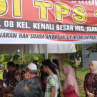 Edi Purwanto dan istri mengantre di TPS 13 Kenali Besar, Alam Barajo, Kota Jambi, Rabu, 14…