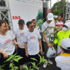 Pemberian bibit pohon dari PWI dan Kementerian BUMN, dalam rangka Hari Pers Nasional, di Jakarta, Minggu,…