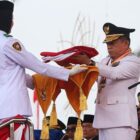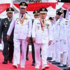 Gubernur Jambi, Al Haris, dan Wakil Gubernur Jambi, Abdullah Sani, hadir pada upacara penurunan bendera Merah…