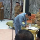 Bupati Batanghari, Muhammad Fadhil Arief, menandatangani berita acara pelantikan 78 kepala sekolah, Senin, 18 Maret 2024…