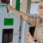 Wakil Ketua Komisi III DPRD Batanghari, Adison, menggunakan hak suaranya, di TPS 04 Desa Bajubang Laut,…