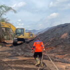 Tim Polda Jambi bersama pihak terkait mengecek kebakaran di stockpile batu bara milik PT BBI, Jumat,…