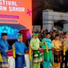 Menteri Pariwisata Sandiaga Uno bersama Ketua DPRD Tanjabbar membuka Festival Arakan Sahur, di Alun-alun Kota Kuala…