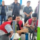 Petugas UPTD Metrologi Jambi dan Polda Jambi memeriksa sampel BBM, Jumat 5 April 2024 | dia…