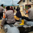 Anggota Kompi 3 Batalyon B Pelopor Satbrimob Polda Jambi membantu korban banjir di Kabupaten Kerinci |…