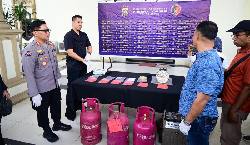Polda Jambi mengungkap kasus pengurangan isi tabung LPG | pld