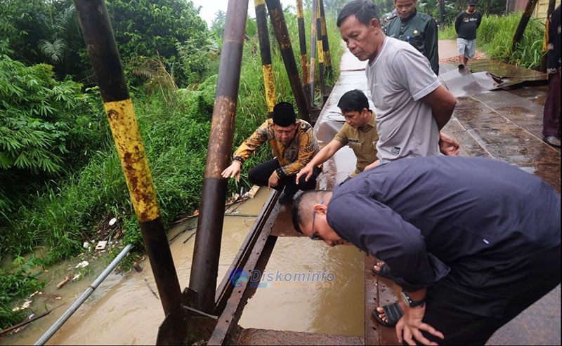 Bupati Muaro Jambi, Dr. Bambang Bayu Suseno, meninjau jembatan yang rusak di Dusun Air Hitam, Desa Kebun IX, Sungai Gelam, Jumat | dki-mj