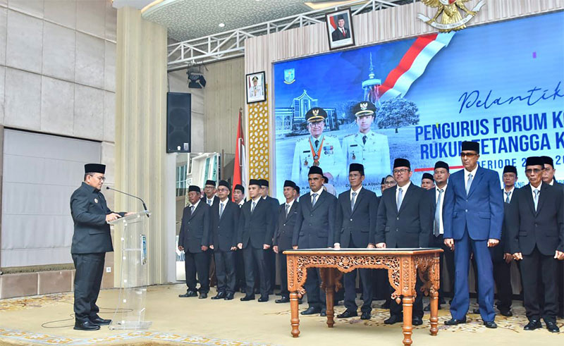 Wali Kota Jambi, Dr. Maulana, melantik pengurus FKRT Kota Jambi periode 2025–2028, di Aula Griya Mayang, Rumah Dinas Wali Kota Jambi, Rabu | dki-kj